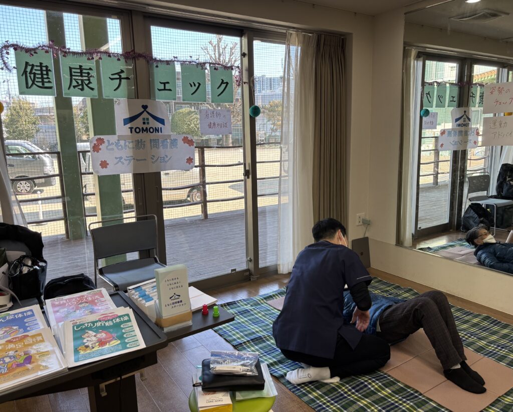 ともに訪問看護ステーションのブースでは、 歩行時の姿勢や動きをチェックさせていただいた後、 お一人おひとりの状態に合わせて、 理学療法士が運動のアドバイスを行いました。
