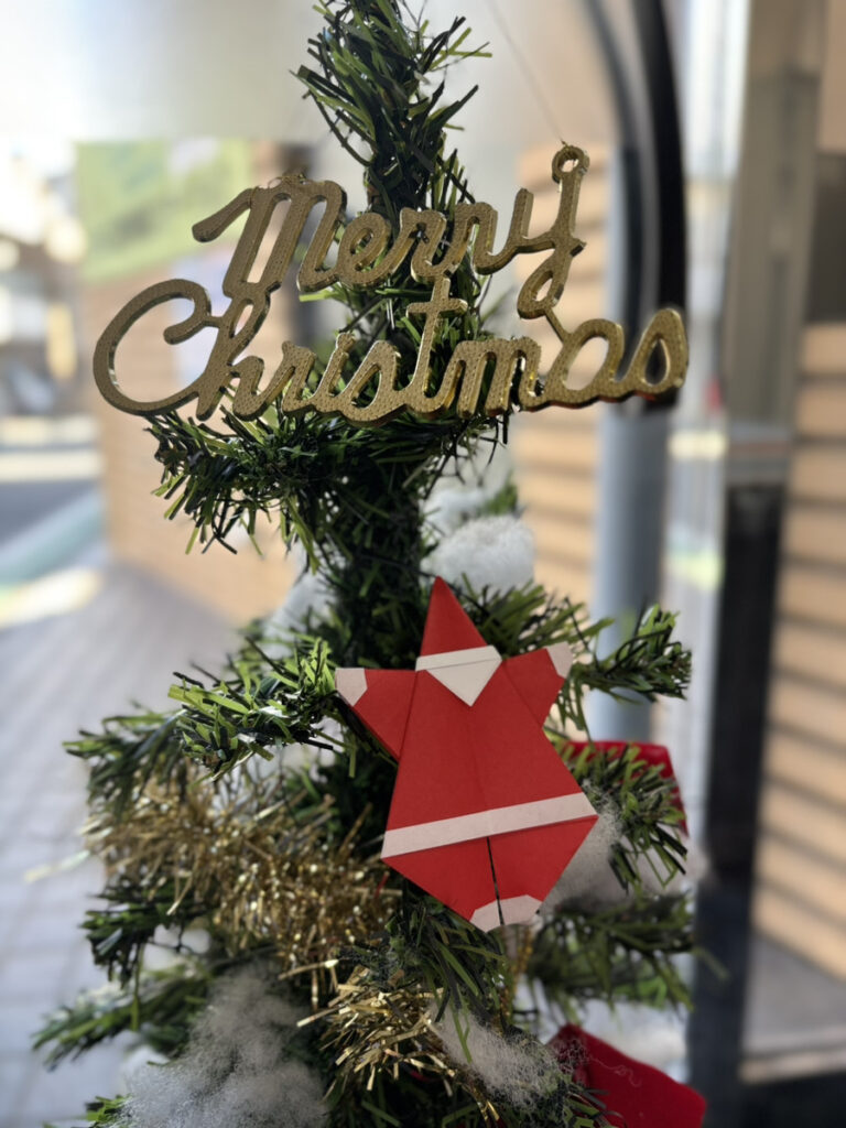 折り紙が得意な利用者さんが折ってくださったサンタさんがステーションに到着しました。